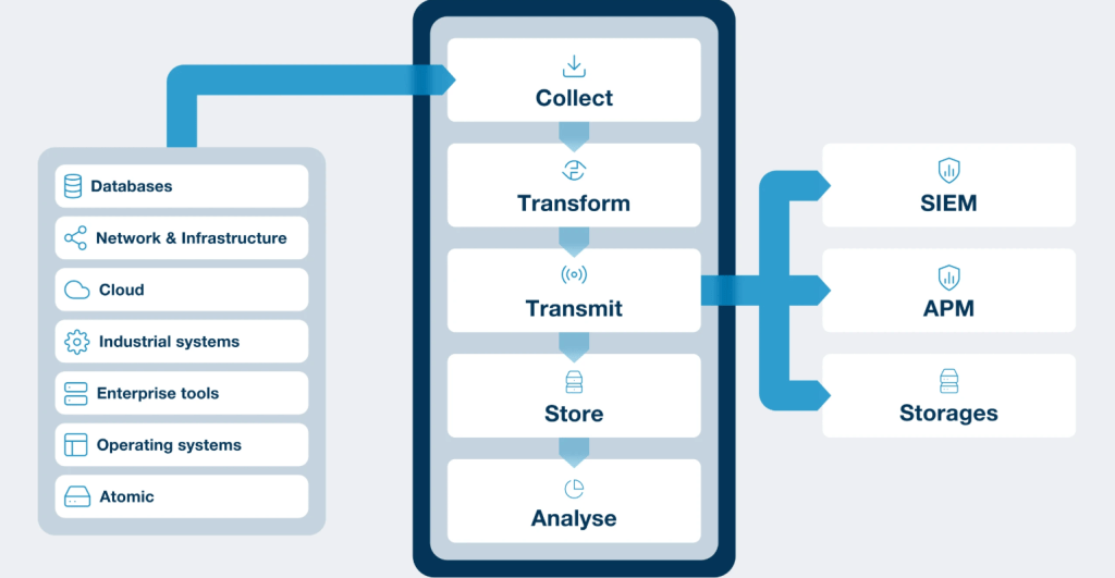 รวบรวม ลดปริมาณ แปลงข้อมูล เพิ่มบริบท และจัดการการส่งต่อข้อมูลจากเครื่องและระบบทุกประเภท ช่วยลดต้นทุนการดำเนินงานด้าน IT เพิ่มประสิทธิภาพการมองเห็นระบบและความปลอดภัย พร้อมรองรับการปฏิบัติตามข้อกำหนดต่าง ๆ